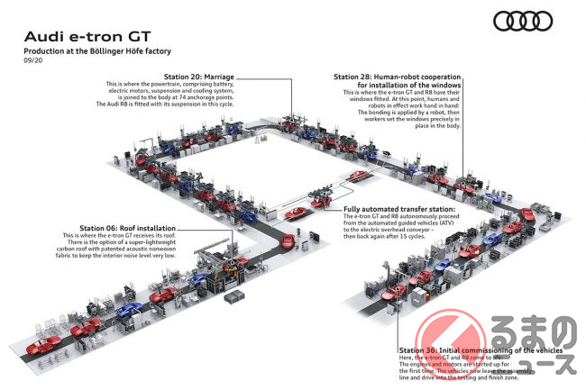 アウディは、同社の電気自動車「e-tron GT」の生産を、ベーリンガーホフ工場で開始した。