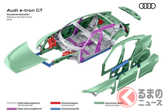 アウディは2020年12月9日、同社の電気自動車「e-tron GT」の生産を、ベーリンガーホフ工場で開始したと発表した。カーボンニュートラルな生産を実現したという、製造工程はどのようなものなのだろうか。