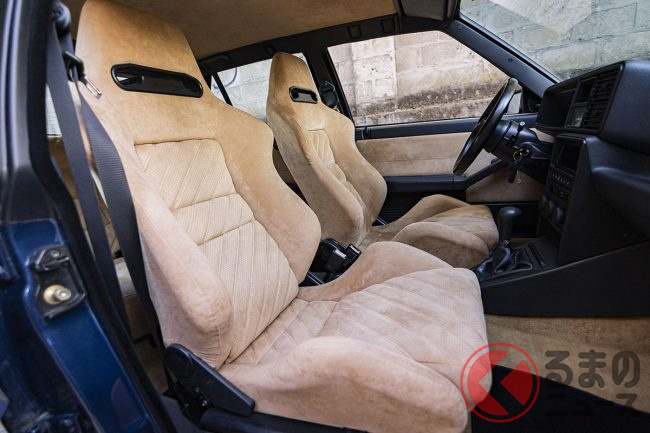 今回、RMサザビーズ「OPEN ROADS, FALL」オークションに出品されたのは、1993年生産とされるエヴォルツィオーネ。走行距離計は約1万6000kmを指しており、「ロッソ・モンツァ」のボディや、有償オプションだった黒革張りレカロ製インテリアなどは、走行距離数を証明するかのように、あたかも新車のようなコンディションを誇っている。