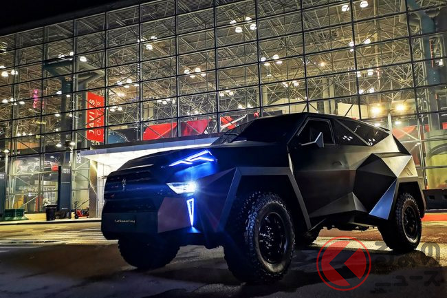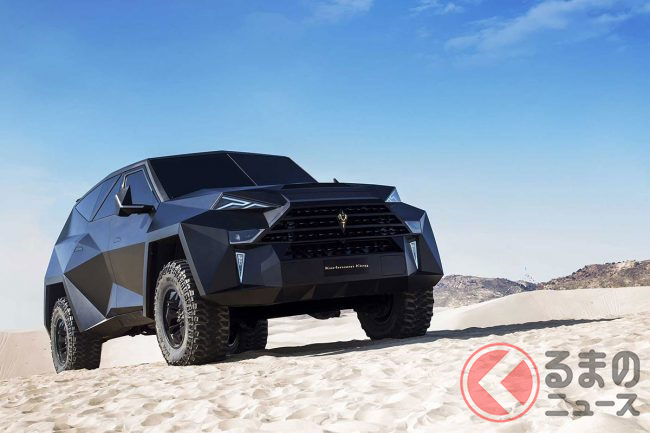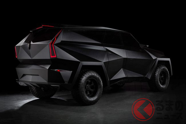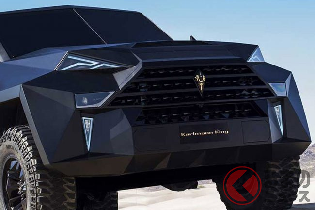 三角の平面だらけで構成された外装を持つこのクルマは、中国の企業IATが開発したスーパーSUV「カールマン・キング」です。