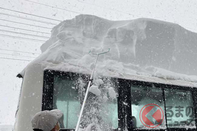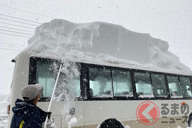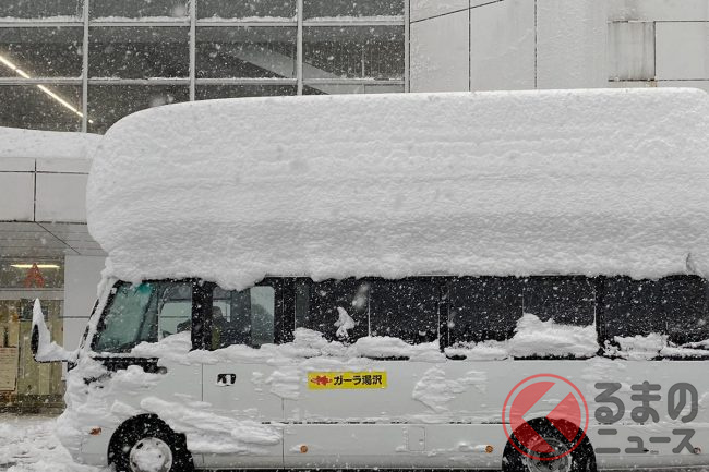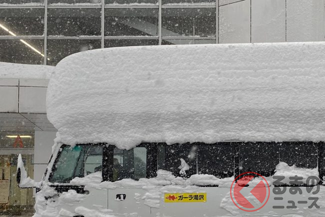暖かった12月上旬から一転、中旬になり全国的な寒波に見舞われたことで、雪国では大雪の被害が相次ぎました。そんななか、SNS上ではガーラ湯沢スノーリゾートが投稿した積雪バスの写真が話題となっています。このような積雪状態を放置して走行すると「雪爆弾」といえる危険な状況になるといいます。