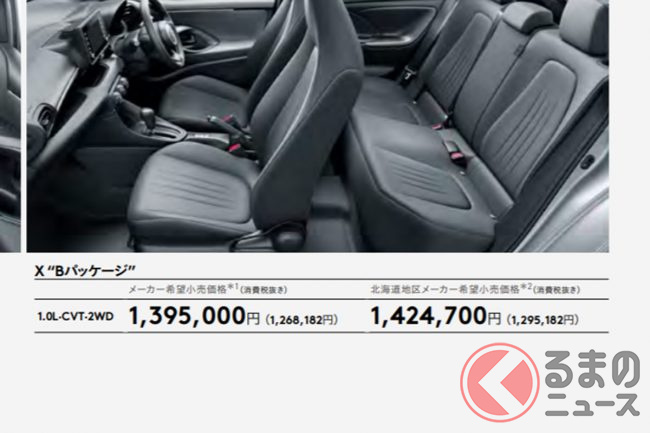 なお、トヨタ「ヤリス」の場合、エントリーグレード「X “Bパッケージ”」の価格は139万5000円ですが北海道では142万4700円と2万9700円ほど上がっています、最上級グレード「HYBRID Z」では2万5300円と、グレードによる装備差で多少異なるようです。