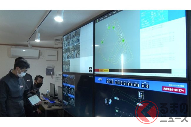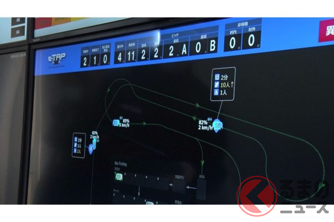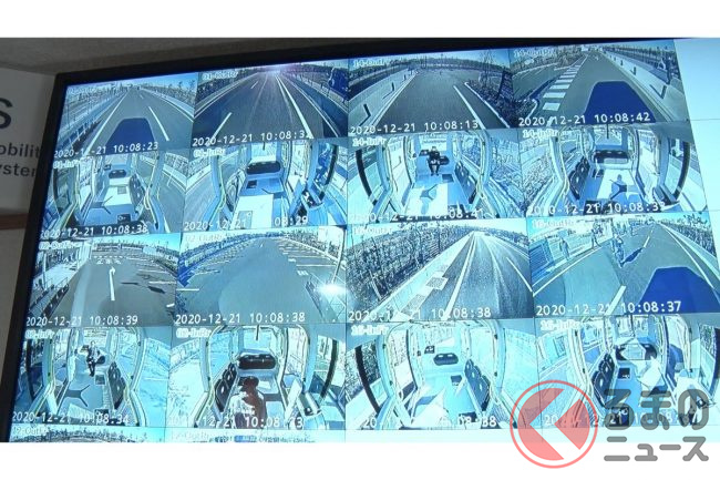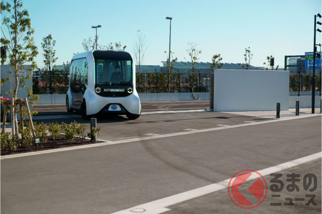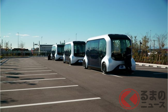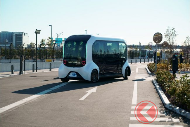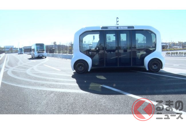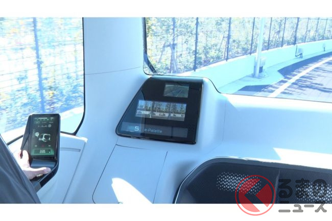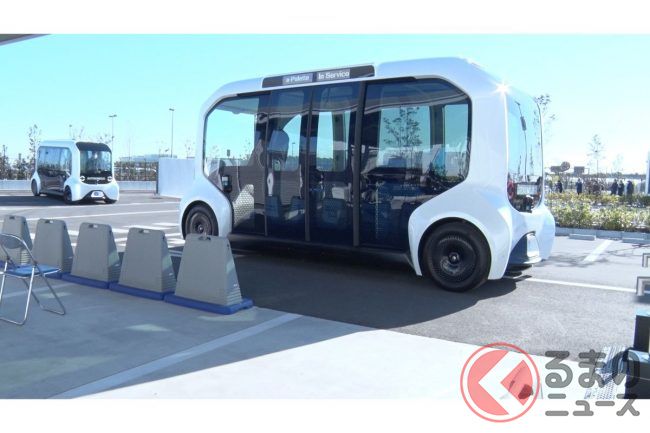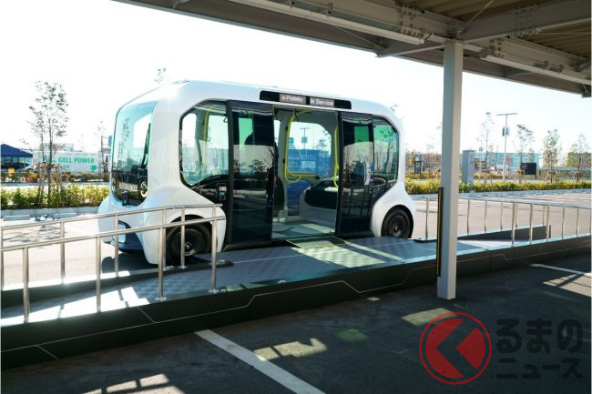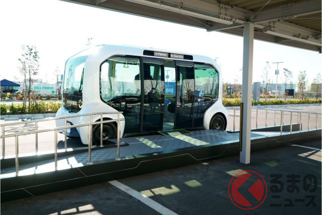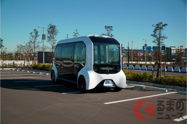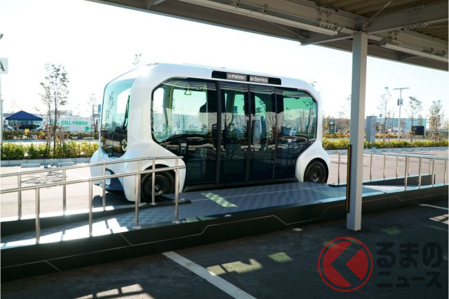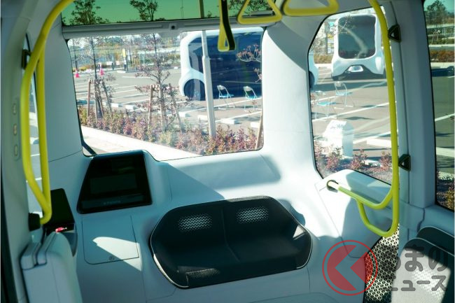 もちろん自動運転で、取材時は(東京オリンピックの選手村での運用時も)緊急停止操作などをするための安全監視員が乗っていたものの、広く実用化させる段階では無人運行を目指している。