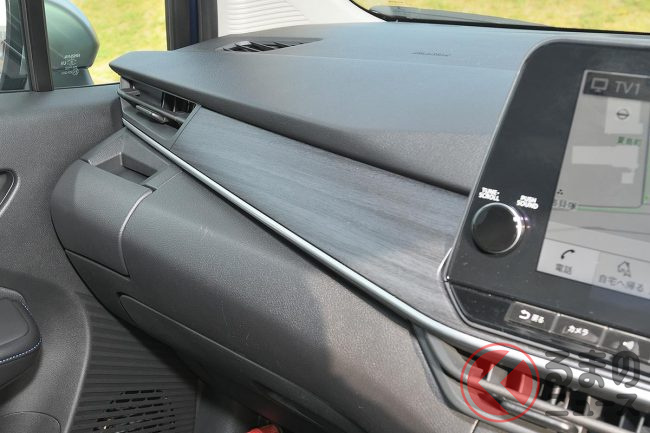 インパネには、鮮やかな木目が特徴的な高級材、紫檀(シタン)の柄にダークグレー色を施しつつ、さりげなくブルーに光るパールをあしらいました。