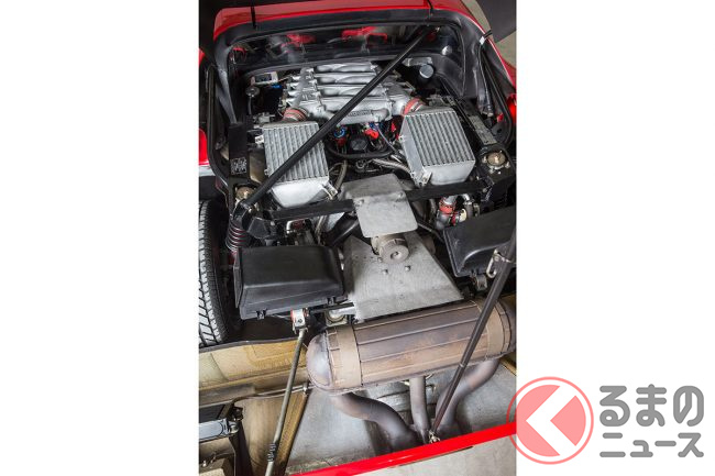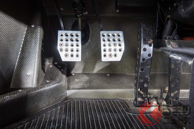 フレーム構造の上にボディをかぶせるという、当時の技術はそのままに、FRPやカーボンケブラーといった、80年代の最新素材をふんだんに使うことで、車両重量を軽減。
