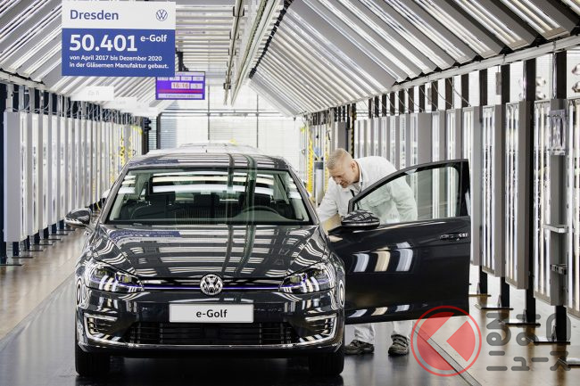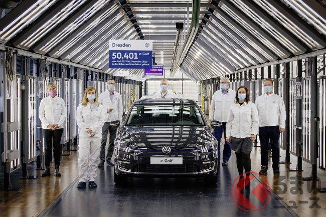独フォルクスワーゲン(VW)は2020年12月23日、同日を持ってハッチバックモデル「ゴルフ」をベースとした電気自動車(EV)「e-Golf(e-ゴルフ)」のVWドレスデン工場での生産を終了したと発表した。