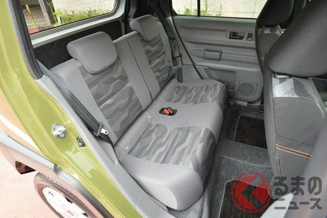 そのキャラクターの象徴といえるのがリヤシート。ハスラーと違ってスライドやリクライニングはなく、ひざ回りスペースもハスラー未満。後席を快適に使おうと思ったらハスラーに軍配です。