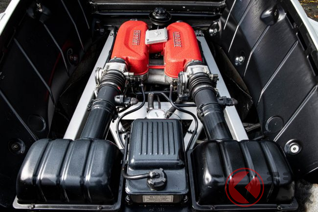 リアミッドに搭載されるエンジンは、基本的にはロードモデルの「360モデナ」と共通。車重は200kgほど軽量化され、それによってパワー・ウェイト・レシオを大幅に低減している。