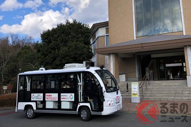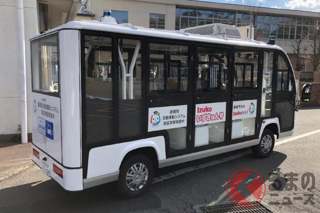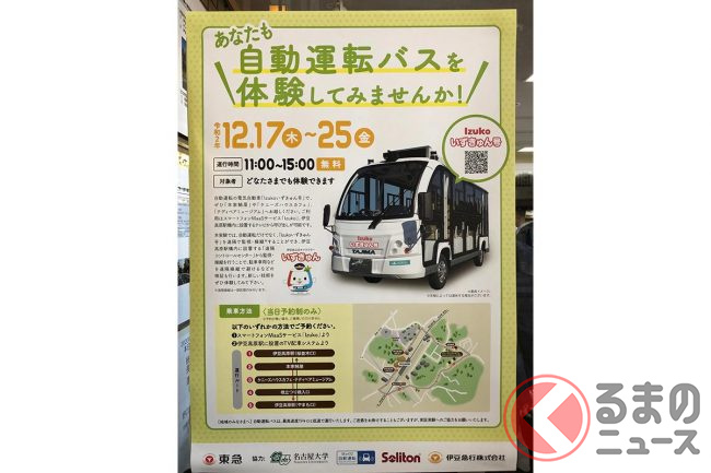 この実験は、首都圏から近い人気の観光地である静岡県伊豆半島の伊豆急・伊豆高原の最寄り駅を起点に、約2.8kmの公道で小型電気自動車バス「いずきゅん号」が走行するというものです。