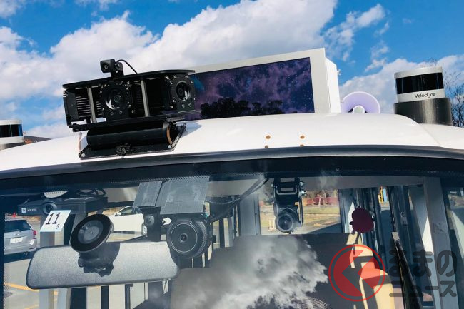 そのなかで、最初は運転手が手動で運転し、ルートの途中から自動運転レベル2として、車両側のカメラやレーダーなどセンサーと、GPSおよび地図データを複合されて走行を開始しました。