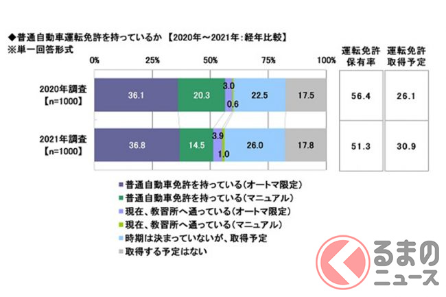 今年の新成人の運転免許保有率は51.3%、マイカー所有率は14.4%