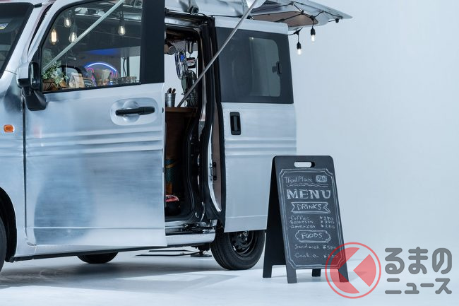 これは「3rd Place VAN」と名付けられたカスタマイズカーで、平日はカフェに 、休日は旅先での車中泊など、仕事と趣味をシームレスに繋げるトレーラー風カフェとして提案するモデルです。