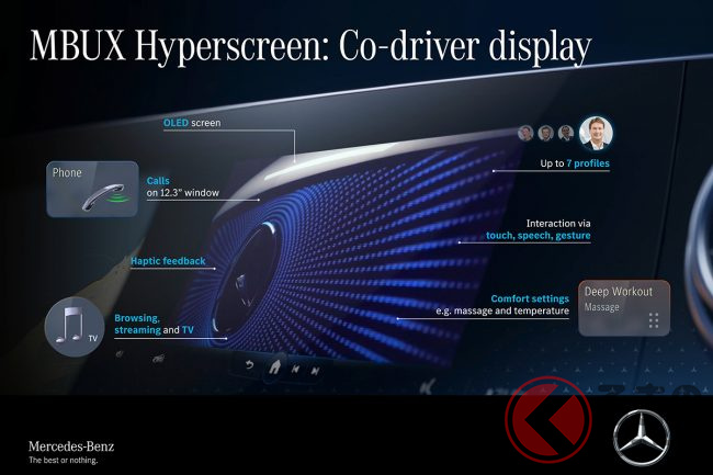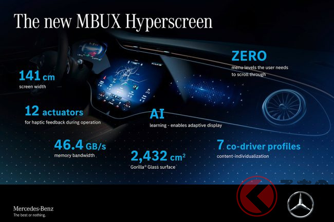 メルセデス・ベンツは、世界最大級のIT・家電ショー「CES」のオンライン開催で米現地時間2021年1月11日に、次世代車内システム「ハイパースクリーン」を世界初公開しました。