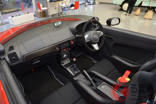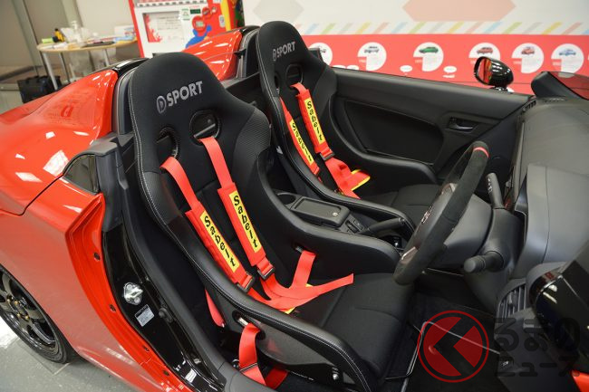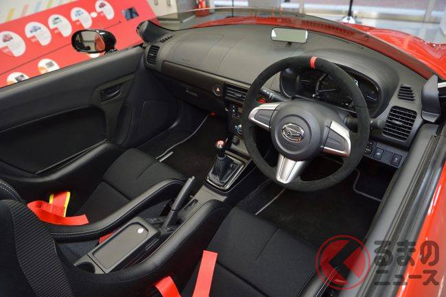 内装にも手が加えられ、ダイハツのカスタマイズパーツを手掛けるDスポーツ製のフルバケットシートを採用しています。
