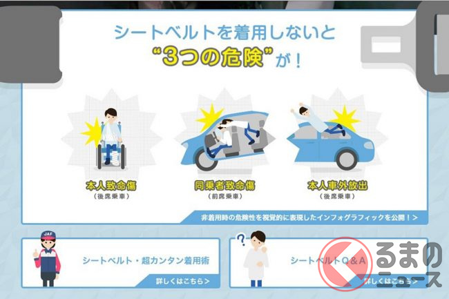 一般道での後席シートベルト着用率は40%!? シートベルトに関する3つの危険とは