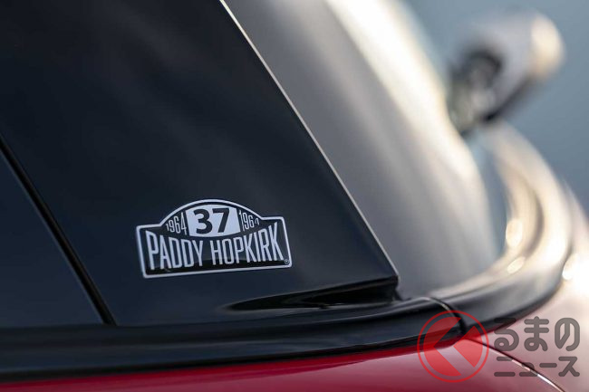 今回発表された限定車、MINI パディ・ホプカーク エディションは、1964年にモンテカルロラリーで優勝した当時の面影を、同じゼッケンナンバー「37」をチリレッドのエクステリアに配置することで再現、さらにホプカーク氏のサインを内外装に添えた特別モデルになっている。