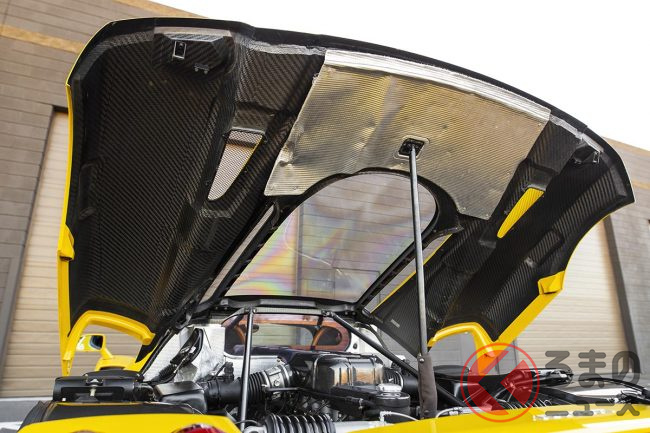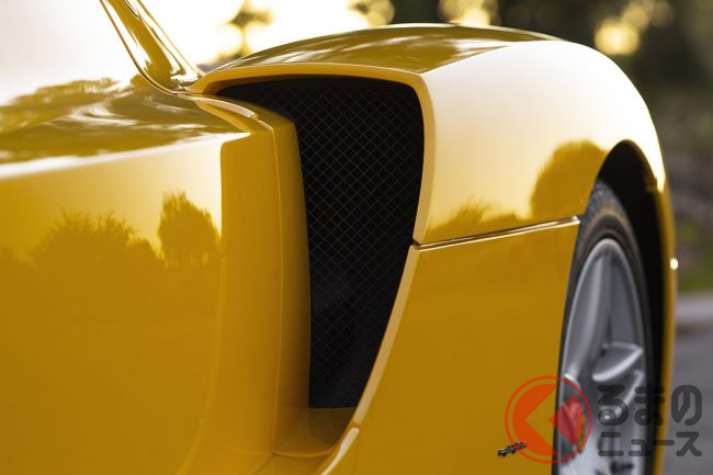 ボディ後半も実にスムーズなデザインだ。リアフェンダーの手前にはエンジンルームにエアを導入するためのエアインテークが設けられ、そのリアフェンダーも想像するほどにはワイドなデザインではない。さらにテール部には可変式のリアフラップが備えられており、最大で75mm、自動的にアップする仕組みとなっている。