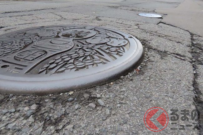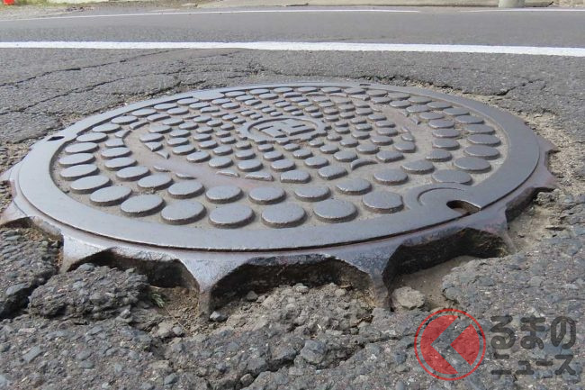 そんな、積雪後に雪が溶けたマンホール周りの路面が摩耗して削れてしまっていると、マンホールが路面より突き出た状態となり、その段差で除雪車やクルマがダメージを受けてしまいます。