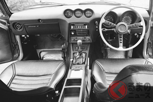 当時はどのクルマも規格が統一されたヘッドライトを採用しており、フェアレディZも丸目2灯を装備していましたが、フェンダーの奥まった位置に配置することで、スポーツカーらしい迫力あるフロントフェイスを演出していました。