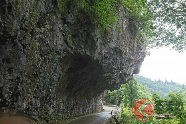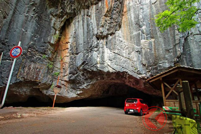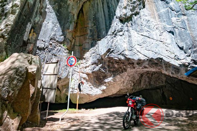 岩の上部の巨大なオーバーハングは、通常の道路上では見ることのない大きさで、トンネル入口も岩の裂け目にしか見えず、真っ暗なため果たしてとおってもいいものか躊躇しましたが、気分はもはや探検隊でした。