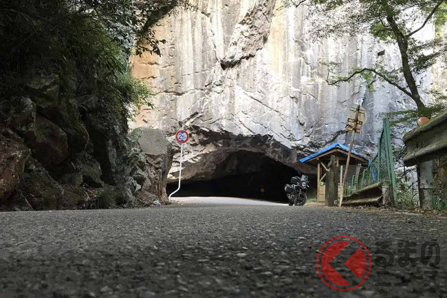 同じく、実際にトンネルを利用した@xr_mt09さんは、その時の感想を「荒々しい素掘りのトンネルや迫り出した岩肌の続く道で秘境感たっぷり。冒険心をくすぐる、とても面白い道でした。トンネルの脇には洞窟があるそうで、入らなかったのがものすごく心残りです」と振り返ります。
