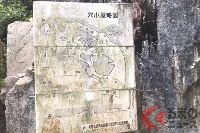 また、トンネルをとおった感想のなかでも触れられているように、トンネル北側の入り口には穴小屋(棲龍洞)という鍾乳洞の入り口もあるそうですが、観光向けではないため、内部に入るには懐中電灯が必須となります。