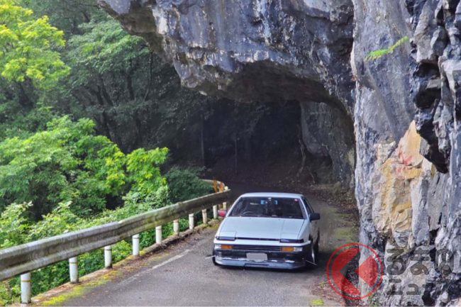 岡山県高梁市を走る県道300号に、大迫力のトンネルがあると、SNS上で話題となっています。