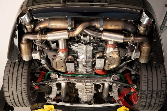 ターボRでまず触れなければならないパートは、ルーフによってチューニングされたパワーユニットである。リアに搭載されるエンジンは、993型911の3.6リッター水平対向6気筒に、独自のツインターボ・システムを組み合わせたものとなっている。