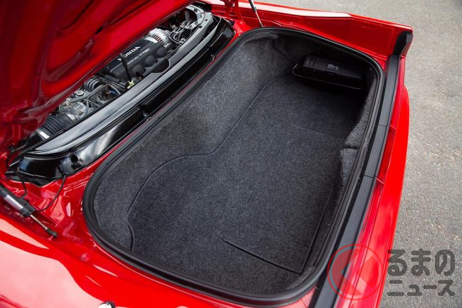 オーバーハングの長さは、ゴルフバッグを積むことができるトランクのためのものではなく、高速走行時の、横風に対する安定性を求めた結果生まれたものだ。同時期に販売されていたフェラーリ「348」と比べれば、その素晴らしさがはっきりする。