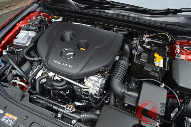 ということでエンジンから紹介してみましょう。今回、ディーゼルと圧縮着火スカイアクティブXのブラッシュアップをおこなっています。