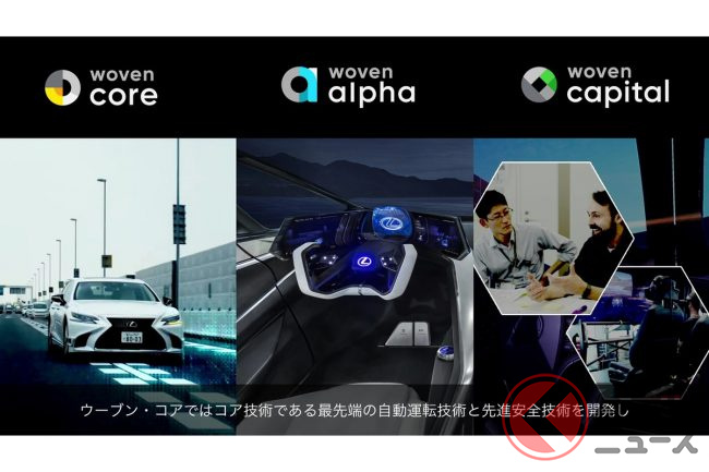 その傘下に、ソフトウェア開発を中心に実際の技術開発をおこなうウーブン・アルファ、自動運転を主体とした技術開発をおこなうウーブン・コア、そしてベンチャー企業への投資などをおこなうウーブン・キャピタルという構成です。