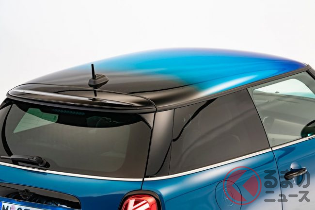 またMINI3ドアとMINI5ドアには、「マルチトーンルーフ」と呼ばれるオプションを用意。これはサンマリノブルー/パーリーアクア/ジェットブラックのルーフがグラデーションになっているのが特徴だ。