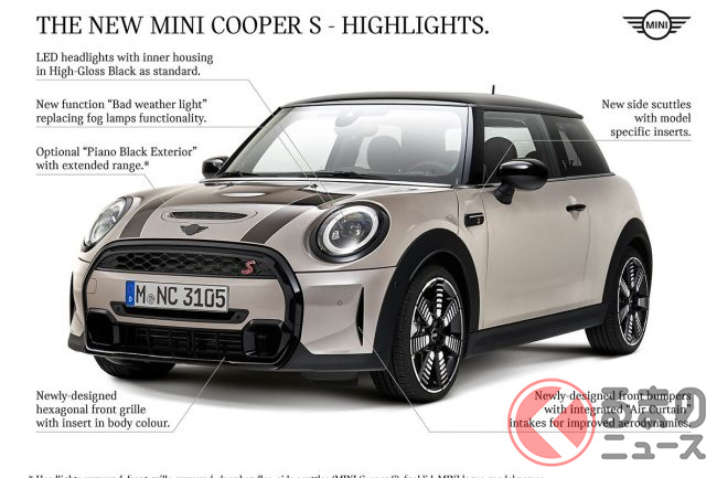 独BMWは2021年1月27日、英国高級小型車ブランド「MINI」の「MINI3ドア」「MINI5ドア」「MINIコンパーチブル」をマイナーチェンジ、2021年3月に世界中の市場で販売を開始すると発表した。