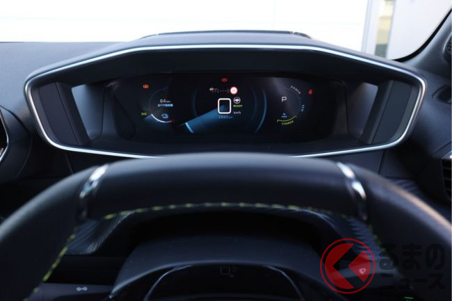 翌日は、東京から御殿場までe-208で取材に出かけた。50kWhの容量のバッテリーがフル充電に近ければ、メーターパネルには300km以上のレンジ(走行可能距離)が示され、カタログ上では、JC08モード燃費で403km走れることになっている。