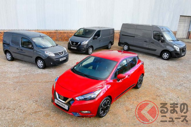 日産は、NV250、NV300、NV400に加えて、コンパクトカーの「マイクラ」の計4台を、フランス国内で生産しています。