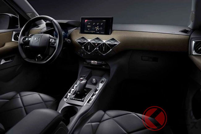 今回装備されるレザーシートは、DS3クロスバックのデビュー時より、その滑らかな手触りや包み込むような座り心地、ドライビングに必要な保持性に、DS燃えるならではのダイヤモンドモチーフの意匠を兼ね備え、高い評価を得ている。