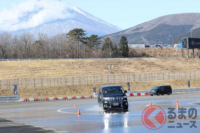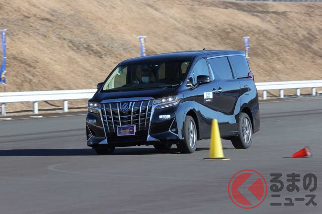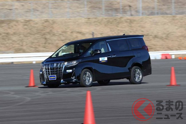 パイロンスラローム、急ブレーキ、障害物回避のような車線変更、2回連続のタイトターン…。タイヤに相当負荷がかかる走りをしても、しっかりとドライバーの要求に応えてくれるので驚いた。それも大型ミニバンのトヨタ「アルファード」で走ってだ。