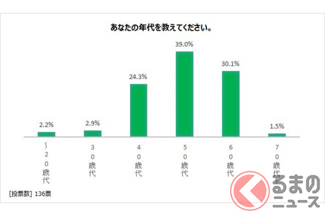 同調査の対象となったのは、キャンピングカーを所有しているユーザー、またはキャンピングカーに興味を持っている人で、回答者のキャンピングカー所有比率は、全体の4分の3でした。ユーザーの年齢は50歳代を中心に、40歳代、60歳代の人がボリュームゾーンとなっています。