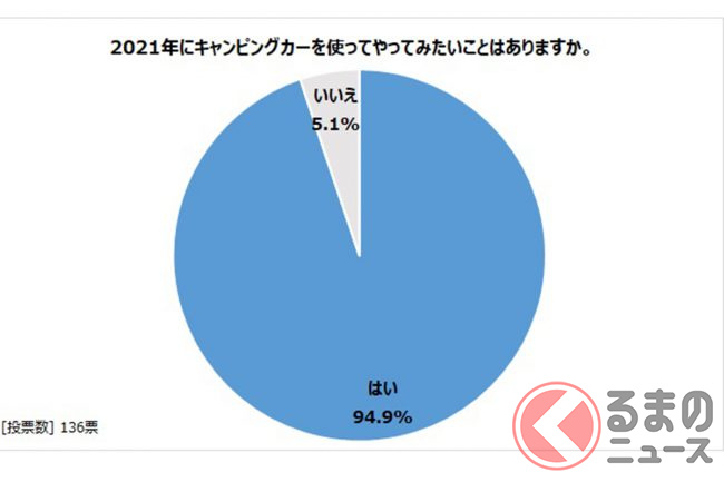 まず、これまでにキャンピングカーを利用したことがあるかを聞いてみたところ、利用したことがある人は、所有している人の比率に比べて5.1ポイント多い結果となりました。現在所有していなくても、以前所有していたり、レンタカーを利用するなど、キャンピングカーを体験している人がいたようです。