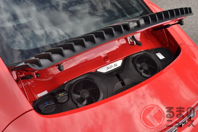 トランク容量もM4クーペは440リッターとしっかり取られているのに対し、911カレラはフロントフード内の、ごく狭いスペースのみとなってしまう。リアシートを荷室として使っている人がほとんどだろう。
