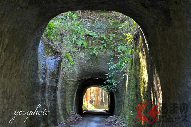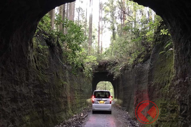 ほかにも、「雨上がりの午後、トンネル上から光が差してきて幻想的だったのが印象に残っています」(@____sumiさん)や、「遺跡のようなとても神秘的な空間でした。クルマ通りがほぼ無い林道の奥にあり、木々のせせらぎしか聞こえてこないひっそりとした場所にそのトンネルはあります。短いふたつのトンネルとトンネルの間にぽっかりと天井に穴が開いており、その場所で見上げると、空と真っすぐ伸びた杉木立のみが視界に広がり、ひとりで佇んでいますと不思議な感覚になる場所です。道自体はとても狭いので、軽自動車のようなコンパクトなクルマでないと行き辛いと思います。また、道中崖下をとおるような箇所もあるので、落石にも注意が必要です」(@mine_airportsさん)など、幻想的な景色に感動したという声が多く聞かれます。
