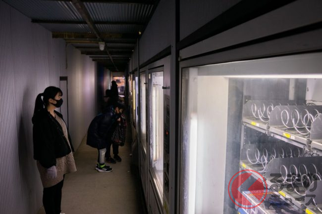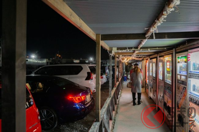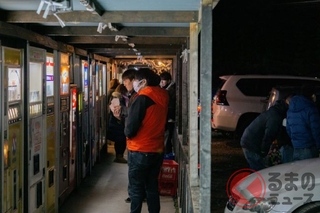 週末は深夜でも駐車場は満車状態で待機列ができるほどだといいますが、なぜ中古タイヤ販売店にレトロ自販機が設置されたのでしょうか。
