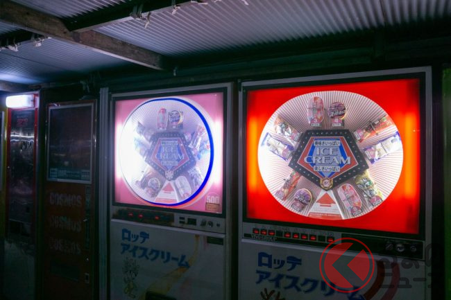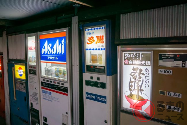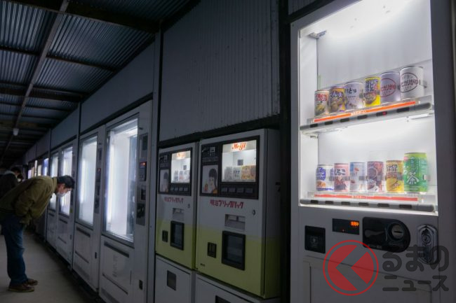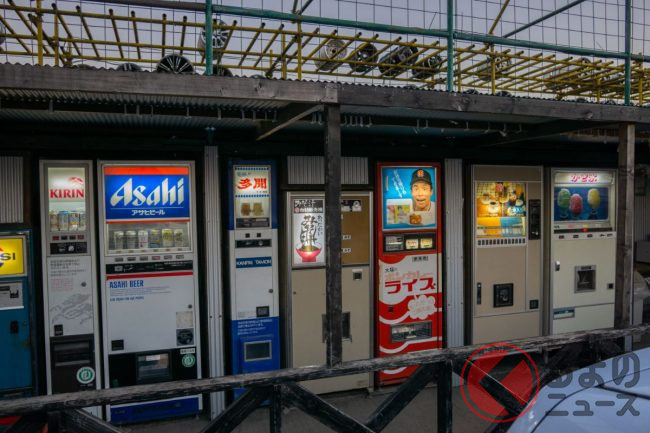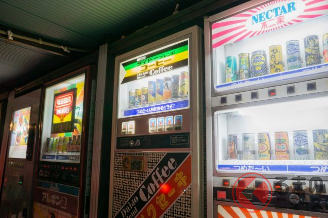 神奈川県相模原市にあるタイヤ販売店に併設された24時間営業の「レトロ自販機」が最近人気を集めています。