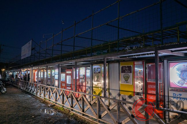 数台から始まったレトロ自販機はどんどん増えて、うどんやそば、ラーメンなど自動調理機を備えた自販機を含め、2020年春頃には40台を突破。自販機の列も1列から2列へ増えて、現在は95台にまで増えました。