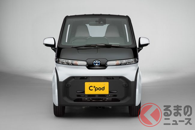 はたして正式発表となったトヨタの純電気自動車、シーポッドは、道路運送車両法の超小型モビリティ(形式指定車)として、軽自動車と同じ、黄色いナンバーが付いていた。単眼カメラとミリ波レーダーを備え、車両や歩行者に対する自動ブレーキなど安全装備は万全。