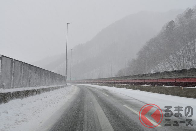 国境の長い関越トンネルを抜けると雪道。しかも下り坂のため、条件的に厳しい。