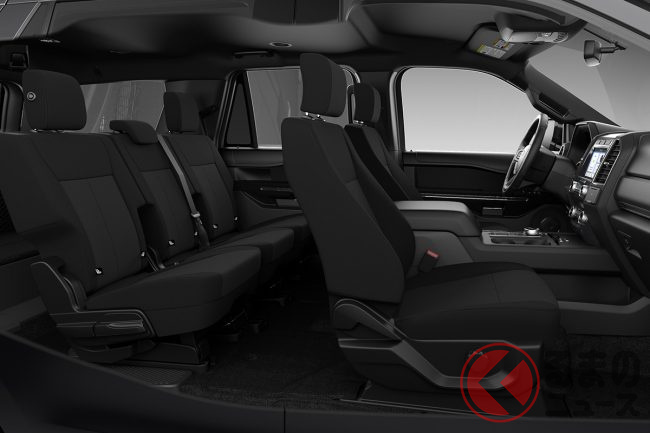 新型エクスペディションの運転席には、電動ランバーサポートと手動式リクライニングが備えられた8ウェイパワーシートが採用され、長距離移動も快適に過ごせるようになっている。