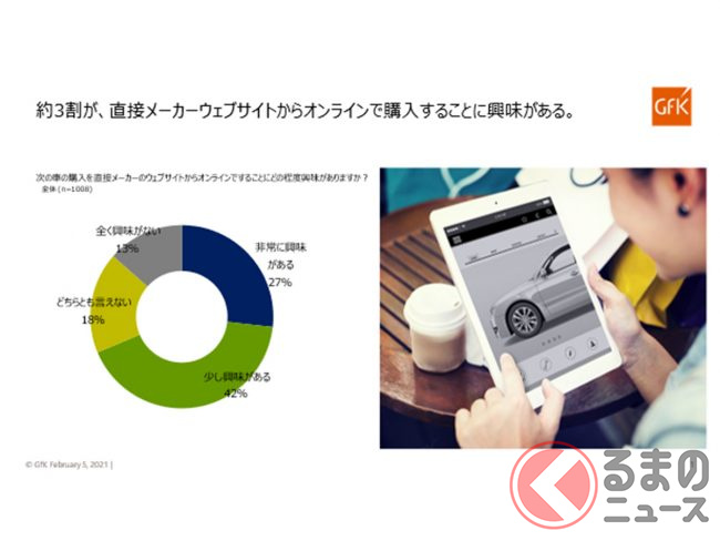 ・3割が次のクルマを直接メーカーのウェブサイトからオンライン購入することに興味ありと回答