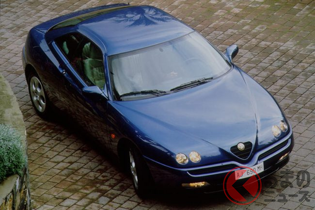 同時期に製造販売された先代アルファ ロメオ「スパイダー」(916型)とプラットフォームを同じくするこのクーペは、「いささか異様な造形である」といえなくもない。