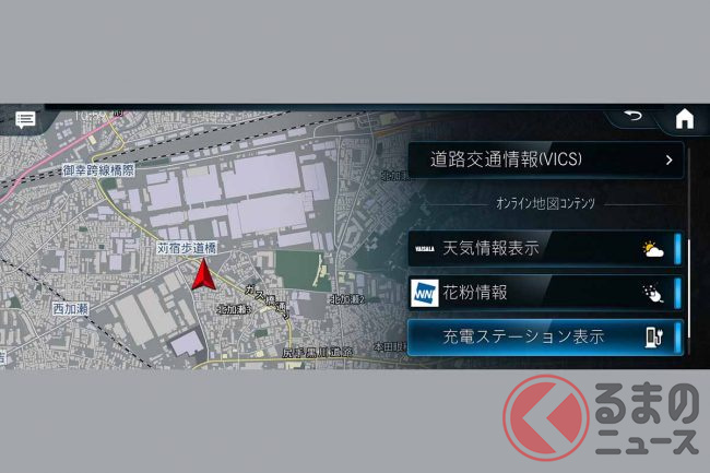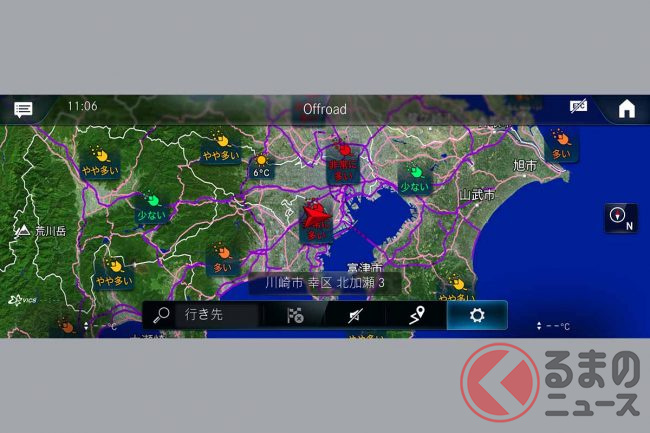 ナビゲーション設定画面で、花粉情報の表示を選択することで、対象モデルのナビゲーションマップ上に、地図の縮尺に応じて表示されるようになる。「少ない」「やや多い」「多い」「非常に多い」の4段階で表示され、走行中のエリアだけでなく目的地付近の花粉飛散量の予測も表示可能。事前にチェックした上で花粉症対策に役立つことが可能だ。